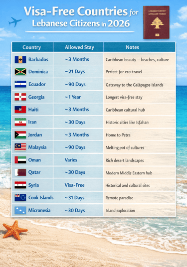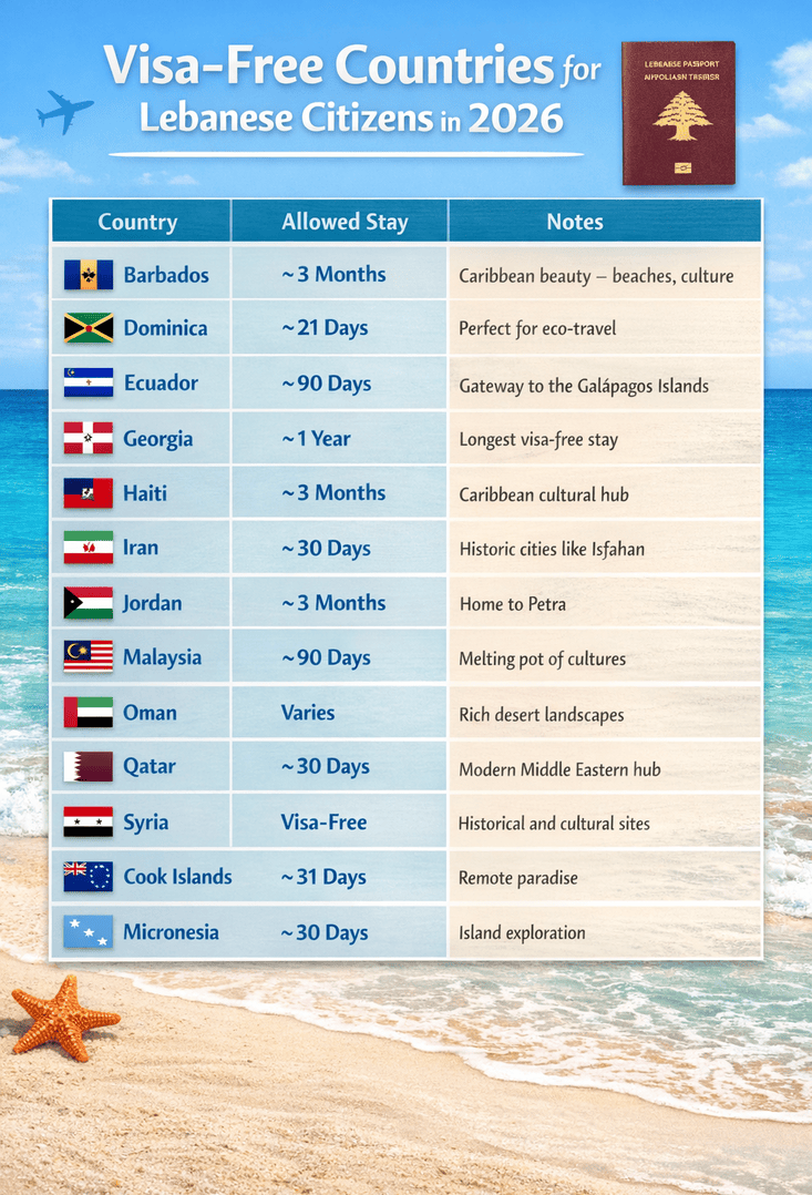 Lebanon Passport Visa-Free Countries 2026: Updated Travel List for Lebanese Citizens! Explore destinations Lebanese citizens can visit without a visa, travel tips and must-see highlights.